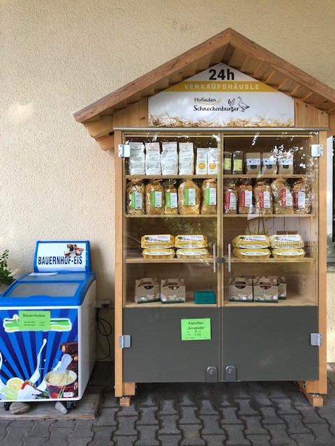 Ab sofort gibt es die Möglichkeit unsere leckeren Produkte auch außerhalb unserer Öffnungszeiten zu kaufen. Unser Verkaufshäusle hat Tag und Nacht für Sie geöffnet und wird stets mit besten Produkten befüllt. Wir freuen uns auf Ihren Besuch!